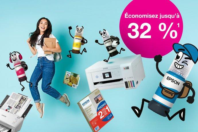 Offres de remboursement sur une sélection d'imprimantes EcoTank et Expression. Offre valable pour les achats effectués entre le 01/10/2025 et le 31/01/2026. Les conditions générales s'appliquent.