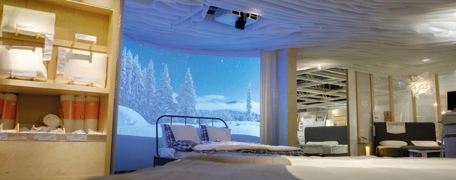 Gebruik frontprojectie of doorzichtprojectie, inclusief montage vanaf vloeroppervlakken, om etalages te transformeren en onvergetelijke meeslepende ervaringen te creëren.