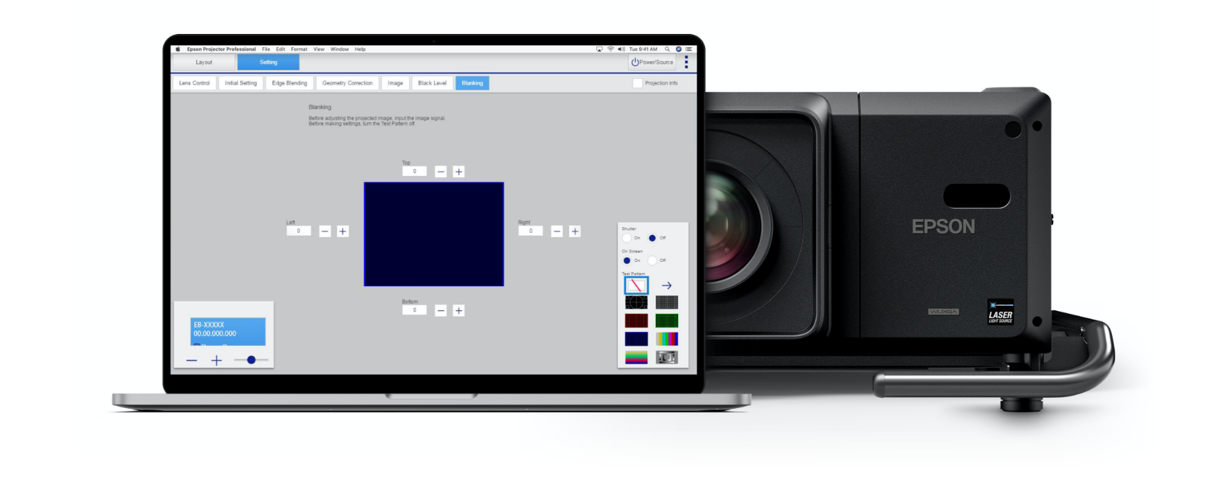 Verkort de installatietijd aanzienlijk dankzij de eenvoudige bediening van elementaire projectorfuncties, zoals het in- en uitschakelen van de stroom of het weergeven van een testbeeld. Pas de focus of positie van de lens op afstand aan en u betovert uw publiek in een oogwenk.